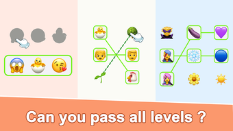 الهدف من اللعبة هو مطابقة الإيموجي ذات الصلة عن طريق ربطها. مع أكثر من 100 لغز مختلف، تم تصميم كل مستوى بشكل جيد مع أزواج ممتعة وفريدة من المشاعر. تقدم اللعبة مجموعة متنوعة من الإيموجي من مستويات سهلة إلى صعبة، مما يجعلها تحديًا ومثيرة للعب.